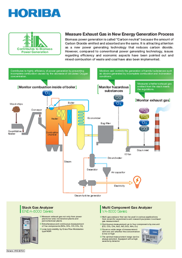 Biomass power generation can be accomplished through various methods, such as the direct combustion of biomass, the high-temperature pyrolysis of biomass to produce pyrolysis gas, or the fermentation of biogas. In order to address the challenges associated with biomass power generation, HORIBA provides a comprehensive range of analyzers. These analyzers include continuous analyzers specifically designed for the detection of siloxane and other special gases present in biogas, thereby offering effective solutions for the biomass power generation industry.